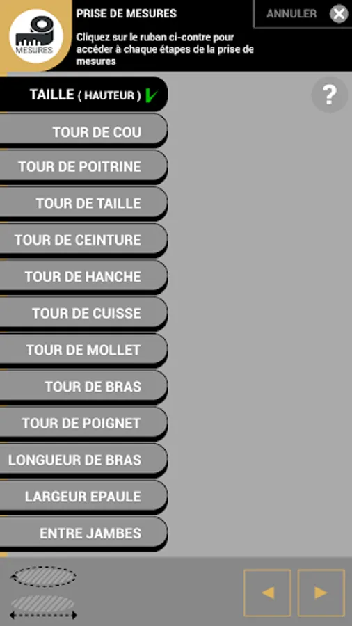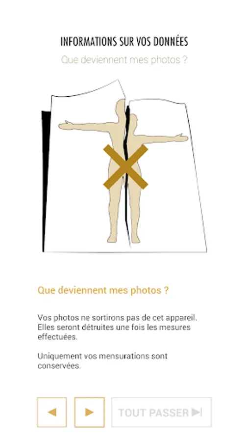 From body scans (one front and profile) and some adjustments, the application quickly calculates all the measurements needed to create your profile morphological (waist, chest, shoulder width ,. ..).