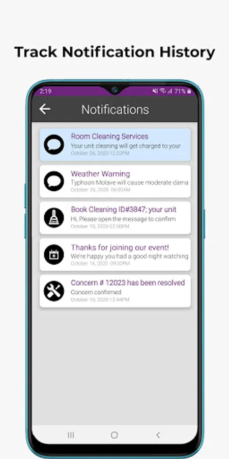 Missed our update on important notices around tenant events, inclement weather, or a service/concern you raised with us? Read it back easily in our notification history.
