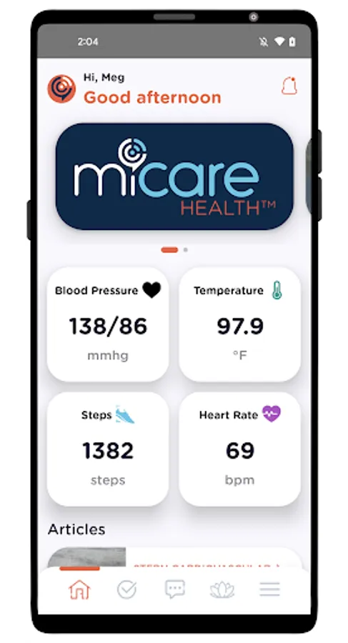 MiCare Health is a mobile health (mHealth) remote patient monitoring (RPM) application prescribed by participating specialty healthcare providers and clinics. This application supports data collected from cellular and Bluetooth approved devices, as well as Apple HealthKit.