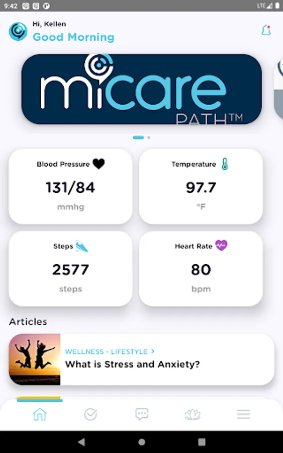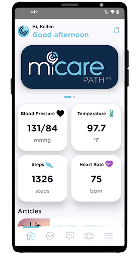 MiCare Path is a mobile health (mHealth) remote patient monitoring (RPM) application prescribed by participating specialty healthcare providers and clinics. This application supports data collected from cellular and Bluetooth approved devices, as well as Apple HealthKit.