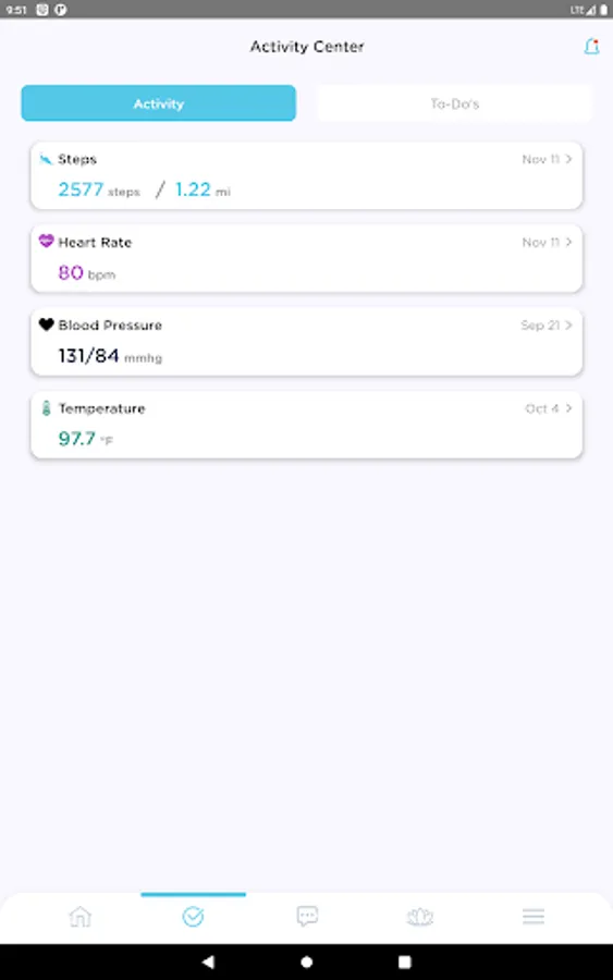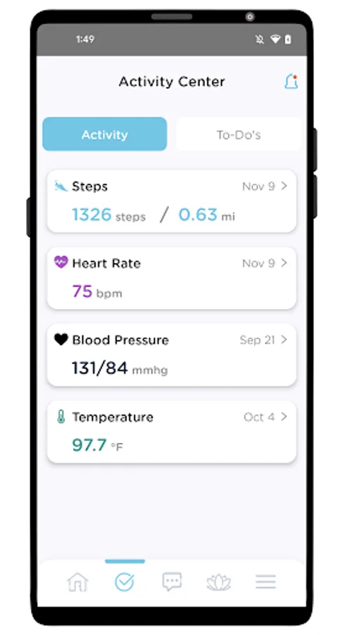 Depending on your care path, your provider may ask that you connect various devices, such as an activity tracker, blood pressure cuff and/or a weight scale to your device. You will receive alerts reminding you to use your devices as prescribed by your physician.