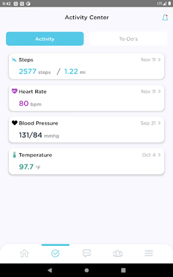 Your care path will be prescribed by your physician. This may include taking daily temperature, blood pressure, daily weight and/or tracking activity through your activity tracker or personal device. For Bluetooth devices, the app will need to be opened to sync with the device each time it is used. For cellular devices, the information is transmitted instantly. Surveys and education may also be assigned by your physician through your app. These results will be shared and reviewed by your care team in real-time.