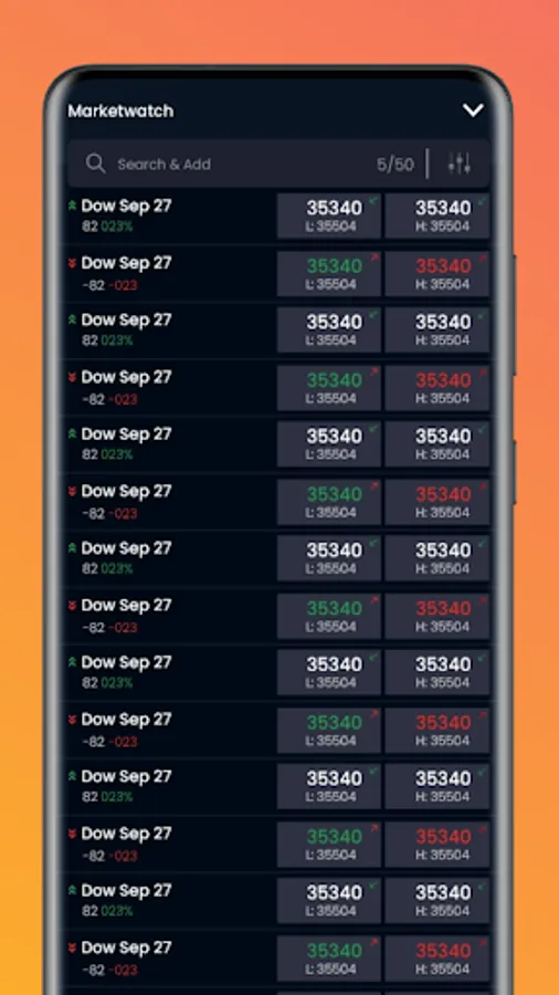 3. Customized Headings: Set your preferred headings for the market watch list.