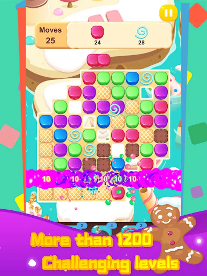 Join the gingerbread man on this fantastic adventure, where every tap and match brings you closer to victory. Let the vibrant graphics, enticing sound effects, and addictive gameplay captivate your senses. Cake Land 2 is not just a game; it's an experience that will leave you craving for more!