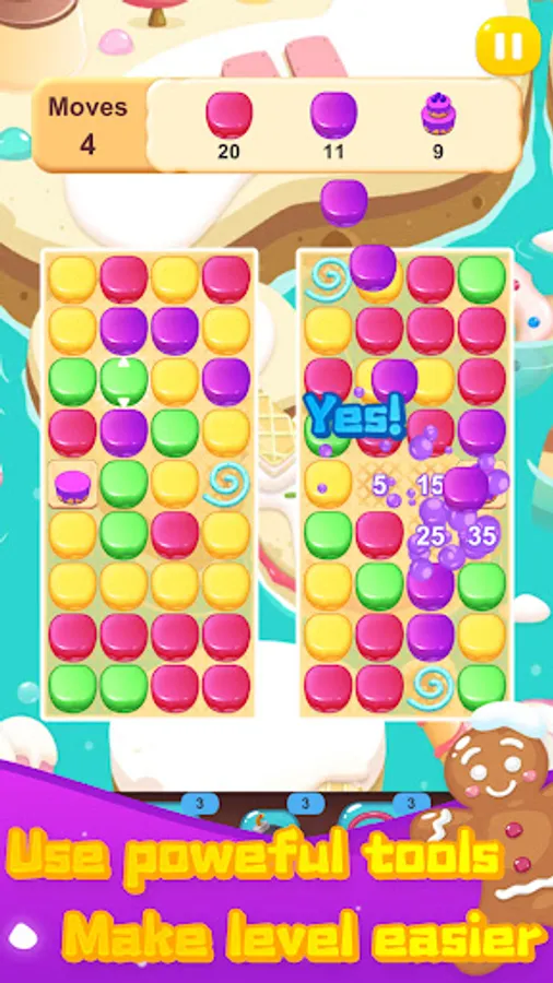 But beware, the game won't be a piece of cake! To pass each level, you'll need to collect all the target cakes. It will require focus, skill, and a touch of sweetness to complete all the challenges. However, don't fret! Cake Land 2 offers powerful tools that can help you overcome even the trickiest obstacles. Utilize these tools wisely to make your gaming experience smoother and more enjoyable.