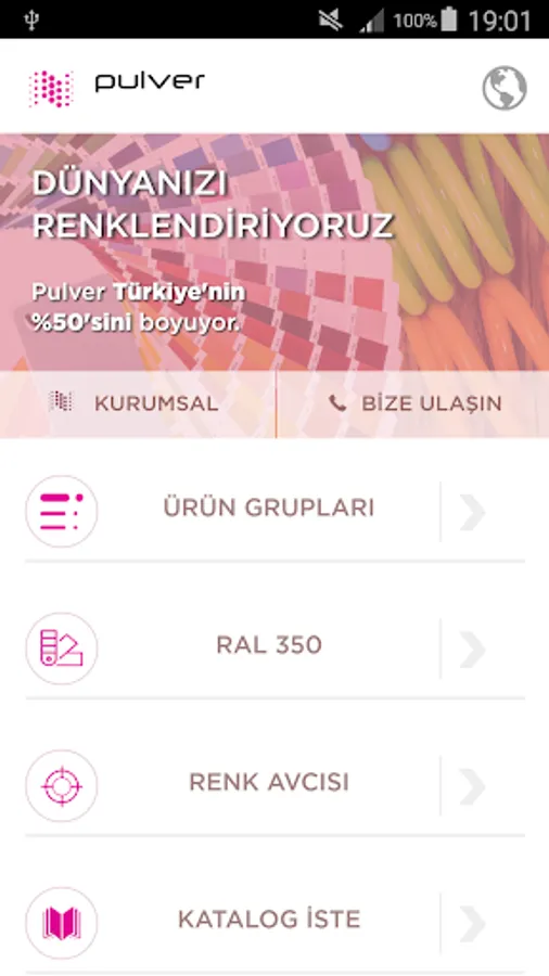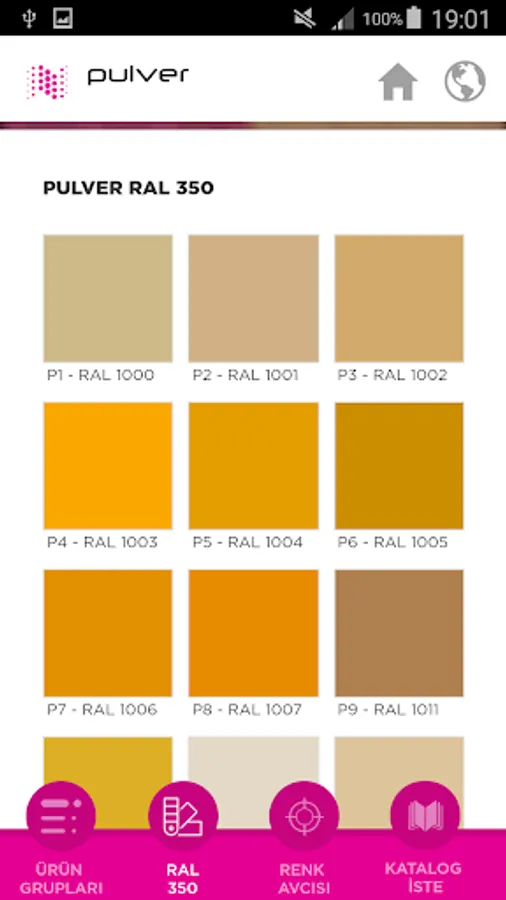 Applications can access the Pulver 350 RAL color chart in the content, color photographs you upload via function hunter can get the colors proposal.