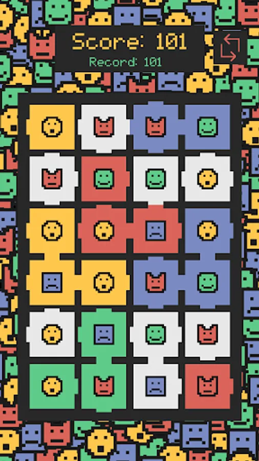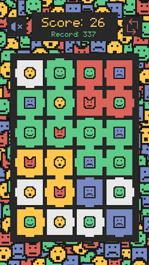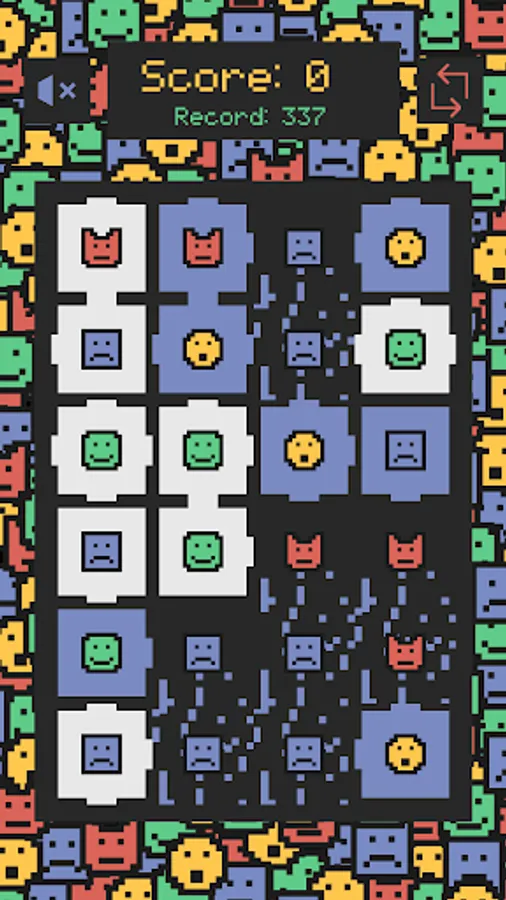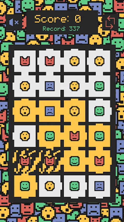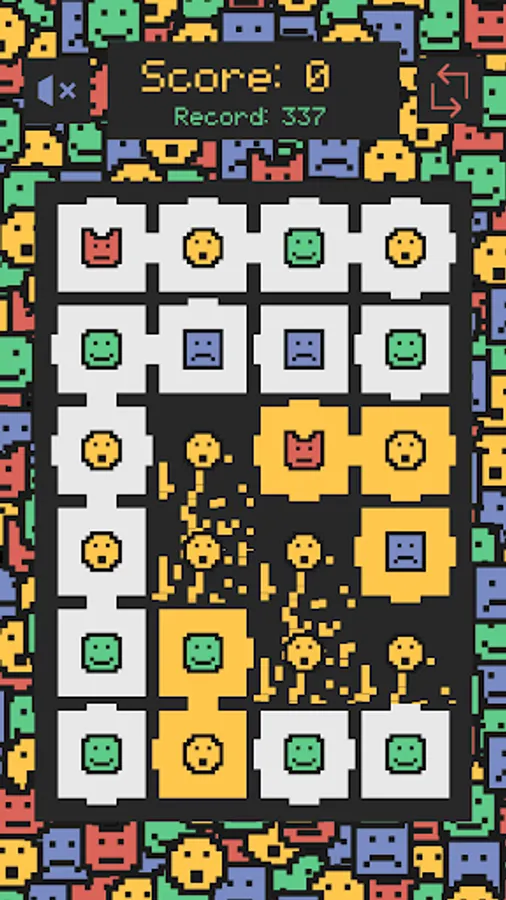 The adjacent squares with the same figure and the same background color will break and you will get points.