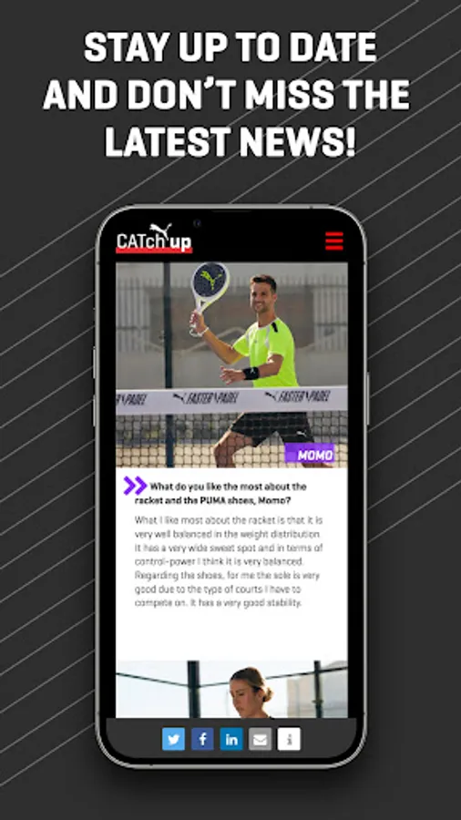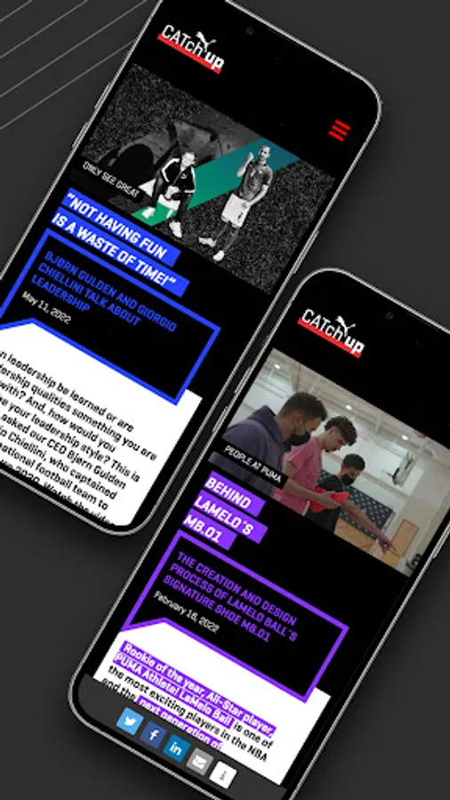 If you are a part of the PUMA Family and want to stay up to date with the fastest sports brand in the world, the CATch up app is for you. Exciting stories about sports, fashion, sustainability, history, business and our employees are waiting here!