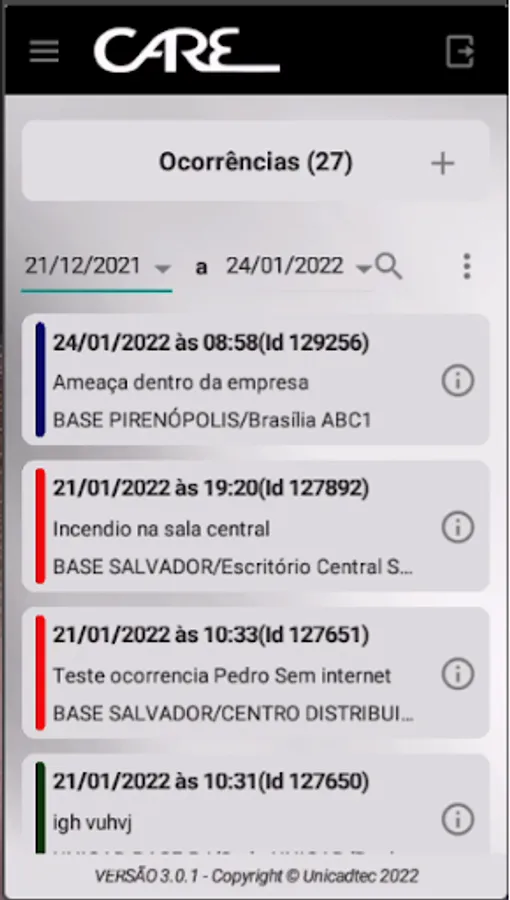 Mobile module of the Occurrence Management System, used to register incidents and surveys of client companies.
