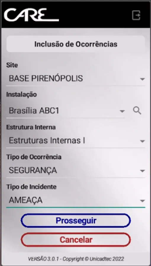 Satellite application of the CARE web system (http://www.pumais.com.br/care).