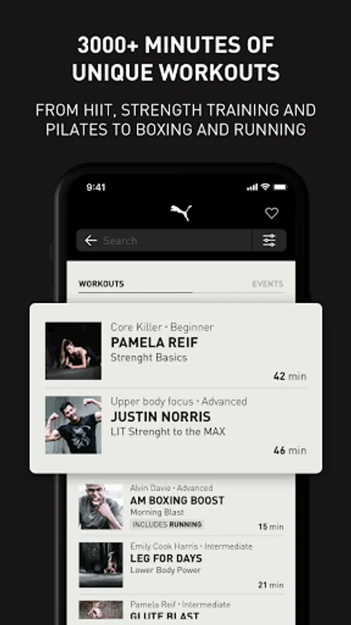 Benefit from over 3,000 minutes of unique video-guided drills from world-class trainers and PUMA athletes, delivering a wide range of workouts, including running, strength training, boxing, HIIT, Pilates, and more.