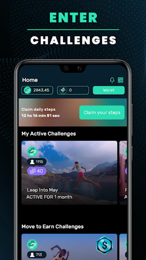 Scan a QR code and connect to a Sponsor or enter a challenge. Connect your fitbit, apple watch or wearable and start tracking your steps.