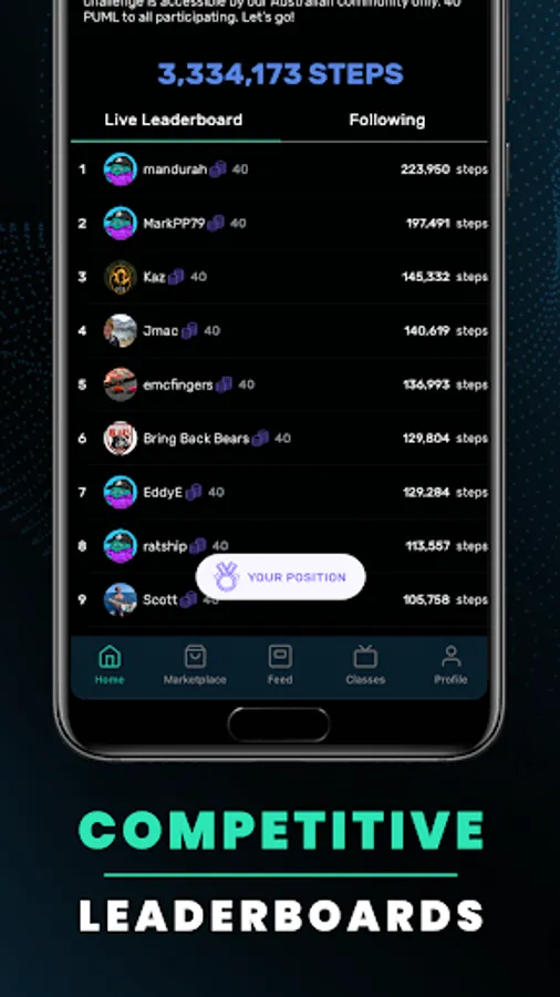 Push yourself with monthly Challenges & compete with others on steps, gym checkins, LIVE STREAM Video challenges and workouts.