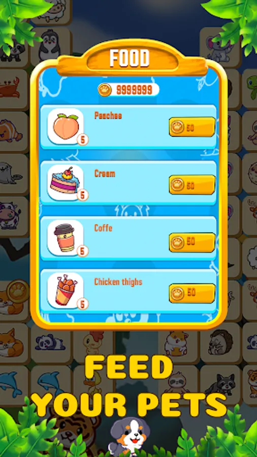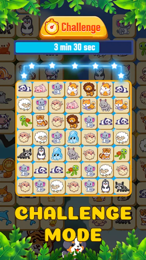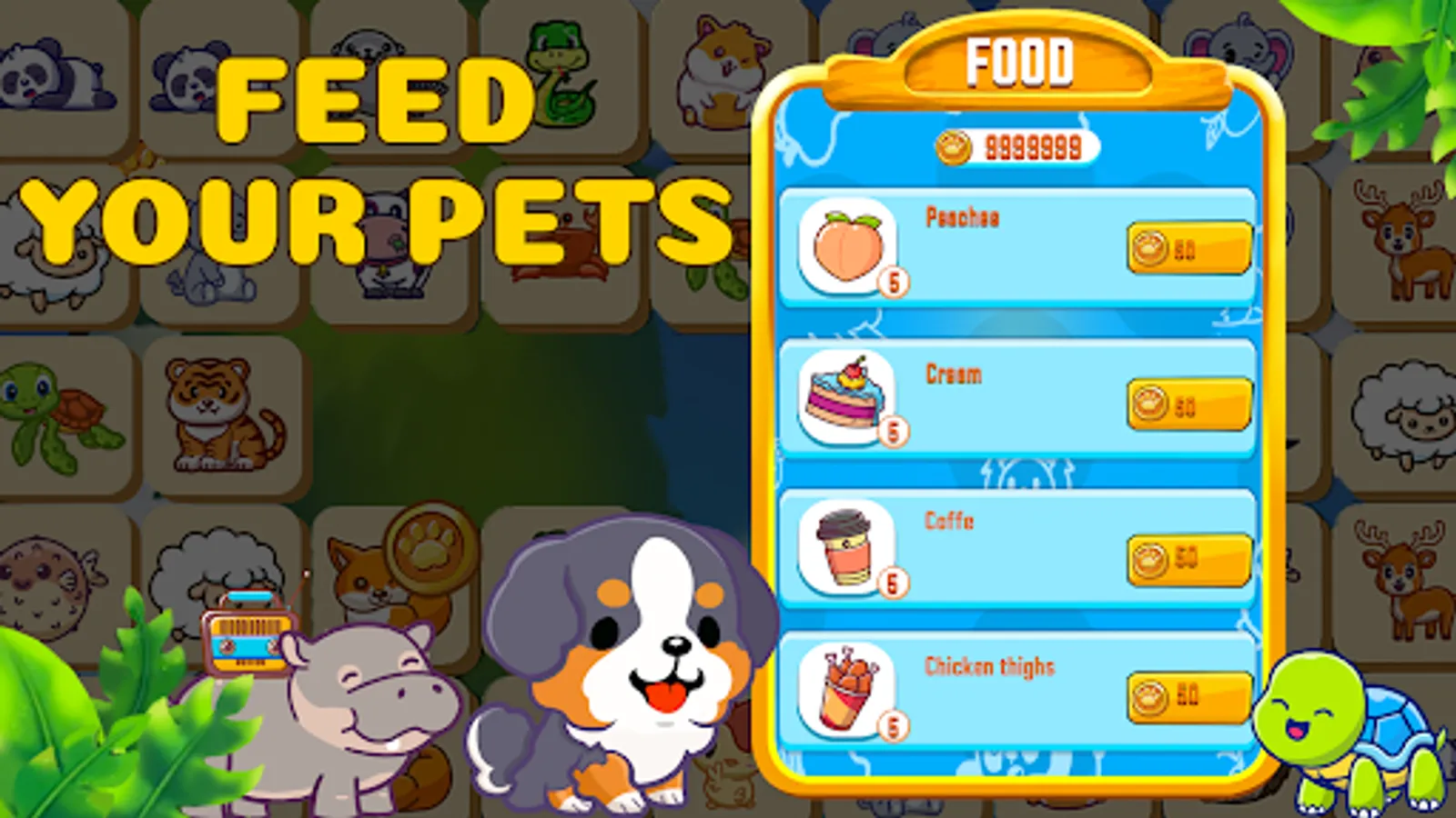 This game adds a twist to the classic pet connect game. During play the game, you will not be forced to play in the timer mode, thus reducing stress for the player. But if you want to challenge yourself and your brain, you can play in challenge mode. You will earn more coins after completing the challenge. With coins, you can use them to buy pets and take care of them.