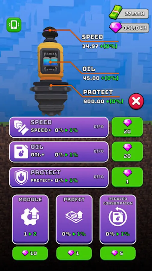 Buy new components and merge them to create more powerful excavators.