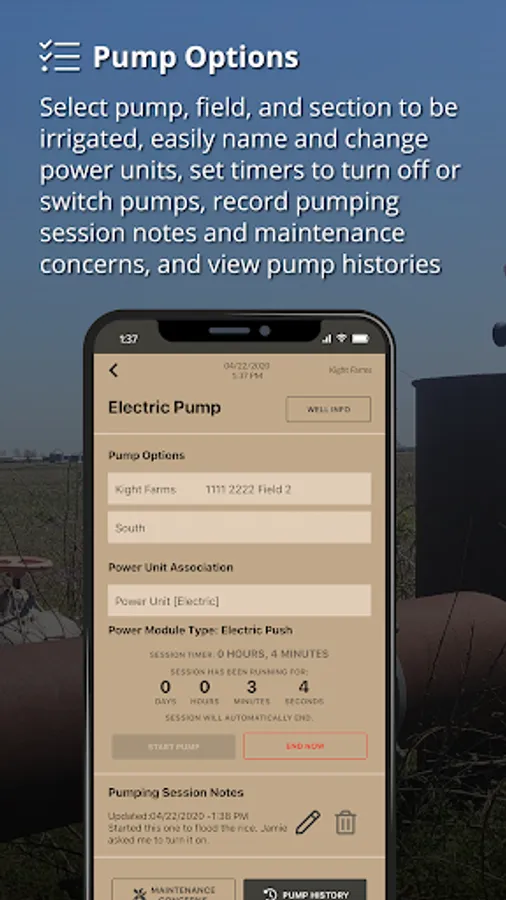 PumpTrakr helps you manage your farm operation, teams, and irrigation pumps much more efficiently while reducing mistakes in your daily routine. We view success as people on farms being less stressed, saving water and fuel, and dads getting home to see t-ball games and not panicking about irrigation pumps at 2 a.m.