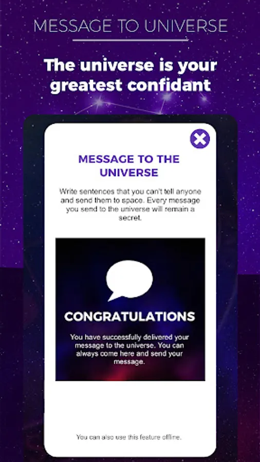 You can share what you can't tell anyone with the "Message to the Universe" feature in Aren. Stay away from stress by sending the secrets inside you into space. Make a wish come true.