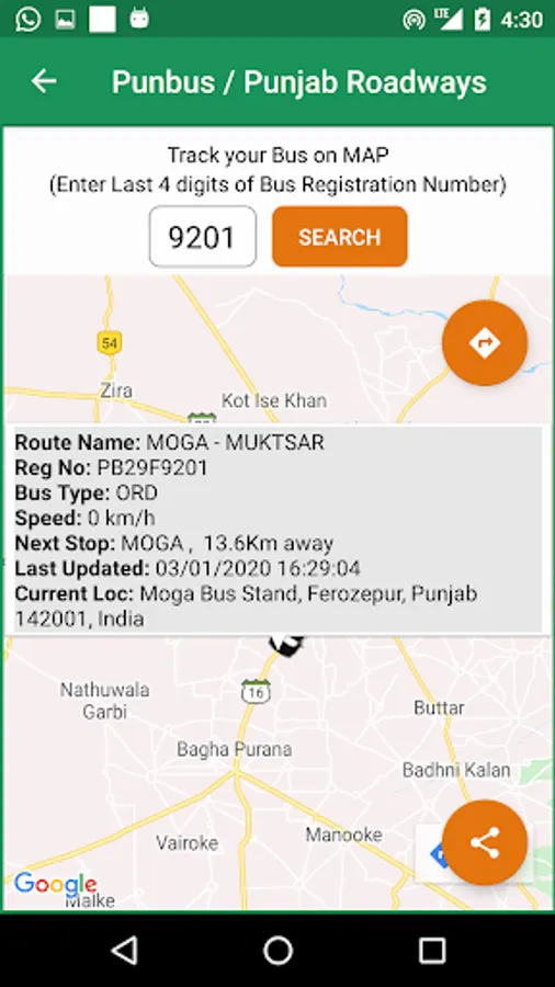 Location of Punbus Long-Route Buses in real-time.The route followed by the Bus during the course of its journey.Passenger Information System providing Estimated Time of Arrival (ETA) and Estimated Time of Departure (ETD) in real-time.
