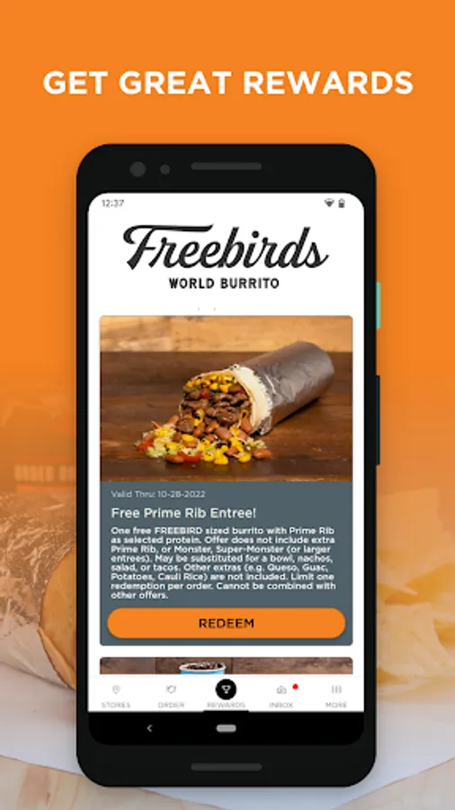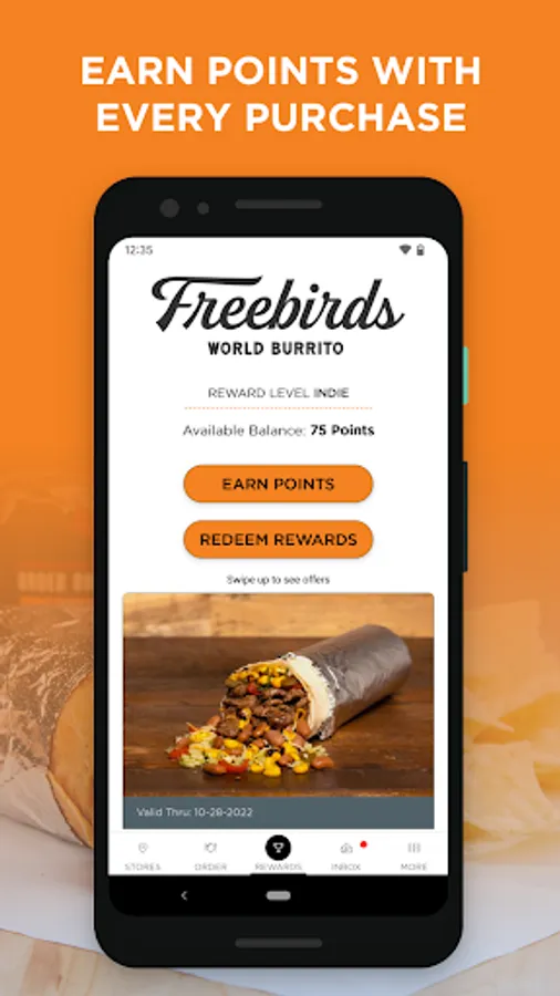 Earn reward points with every purchase with the Freebirds App. Find the closest location, order through the app and start earning rewards today!