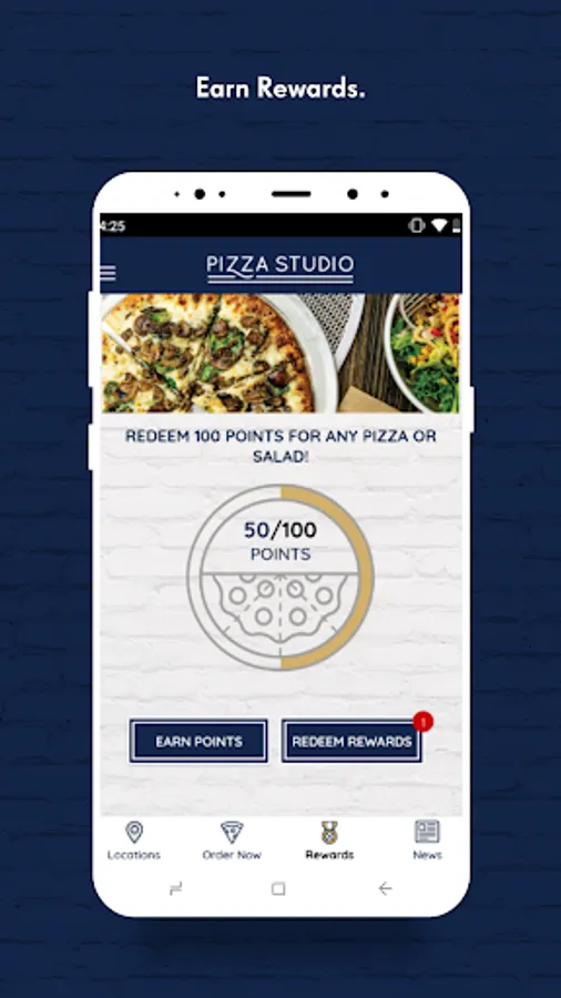 At Pizza Studio, we believe you get out what you put in. That's why we work tirelessly to provide the highest-quality ingredients across-the-board. We're fanatics from the crust up! Trust our crusts and our ingredients. Our Signature Salads and Pizzas will shatter your notions about pizza and as our dough rises, so does the bar. Create, Eat and Enjoy using our app to place your order and skip the line! Earn, track and redeem points by joining our loyalty program using the app!