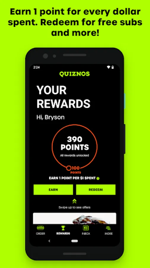 Download Quiznos Toasty Points loyalty app. You eat, we reward with Quiznos Toasty Points. Find the closest Quiznos locations, place your order for pick up or delivery, and get exclusive offers and discounts, all through the app.