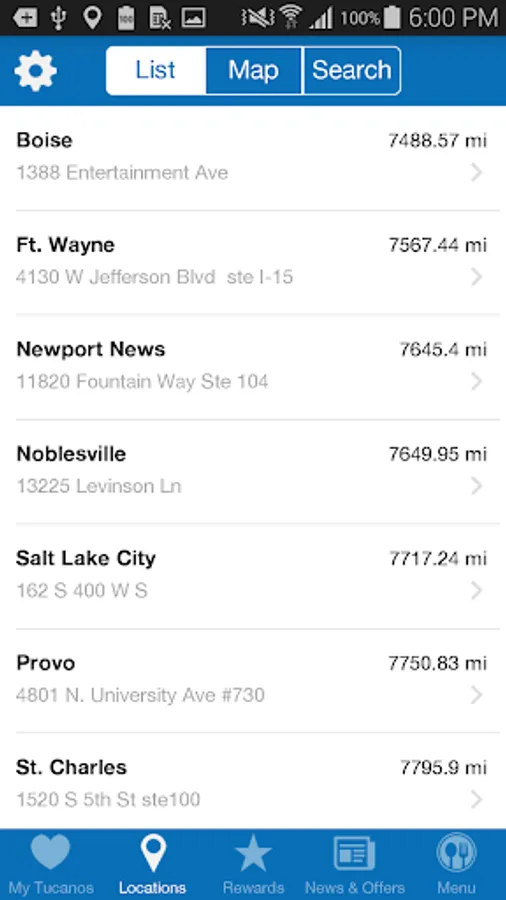 -Map view- Uses your phones GPS to find the closest Tucanos restaurant location.