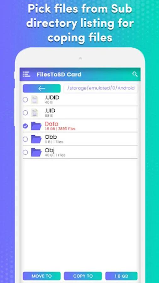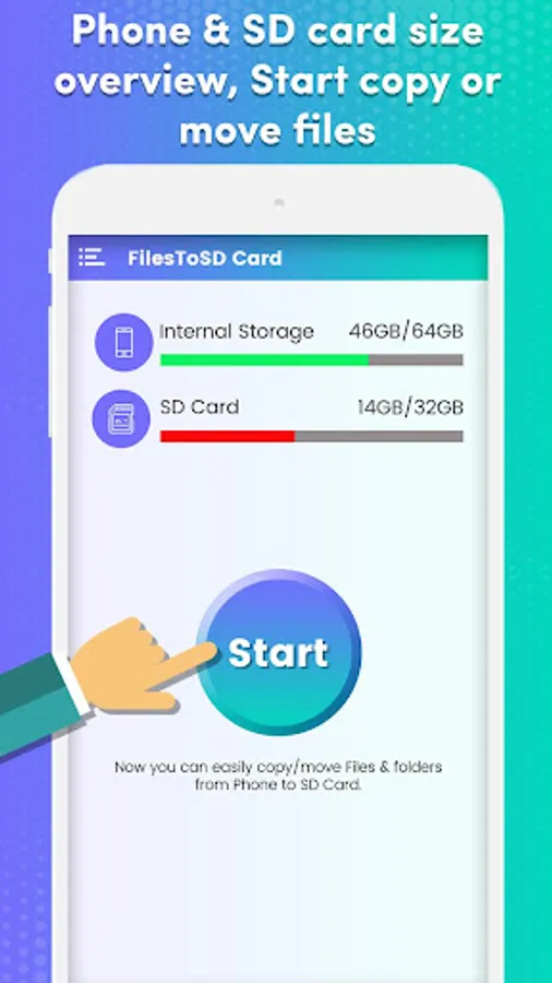 You can copy or move files to SD Card and also move to SD Card with the help of Files & Folders to SD Card - Copy to SD Card, Data transfer from phone.