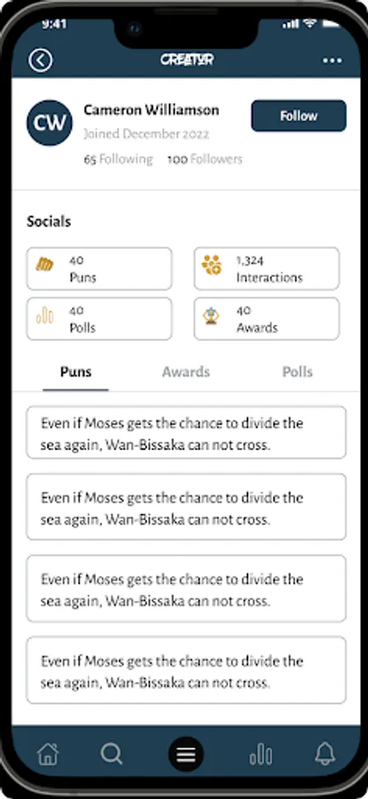 Discover top trending punchlines, quotable, songs and artists. Follow Content Creators, and Artists you like, to keep your finger on the pulse of what’s happening. Whether you’re interested in the most witty Peter Drury Commentary, the best Afro-Beats Lyrics, Politicians' Quotable(s) or Just Mind-Boggling Punchlines from HipHop's finest wordsmiths, We're your plug.