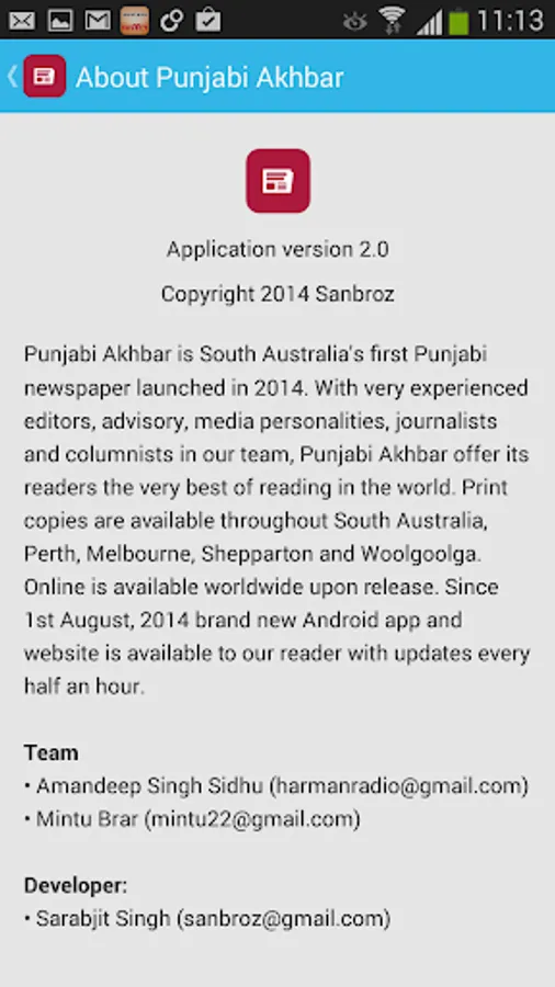 Punjabi Akhbar is South Australia's first Punjabi newspaper launched in 2013. With very experienced editors, advisory, media personalities, journalists and columnists in our team, Punjabi Akhbar offer its readers the very best of reading in the world. Print copies are available throughout South Australia, Perth, Melbourne, Shepparton and Woolgoolga. Online is available worldwide upon release. Since 1st August, 2014 brand new Android app and website is available to our reader with updates every half an hour.
