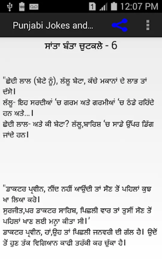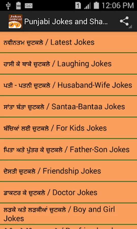ਇਹ ਐਪਲੀਕੇਸ਼ਨ ਪੰਜਾਬੀ ਭਾਸ਼ਾ ਦੇ ਪ੍ਰੇਮੀਆਂ ਲਈ ਹੈ, ਚੁਟਕਲੇ ਸਭ ਤੋਂ ਮਜ਼ੇਦਾਰ, ਸਭ ਤੋਂ ਵਧੀਆ ਚੁਟਕਲੇ ਦੀ ਸ਼੍ਰੇਣੀਆਂ ਹਨ ।