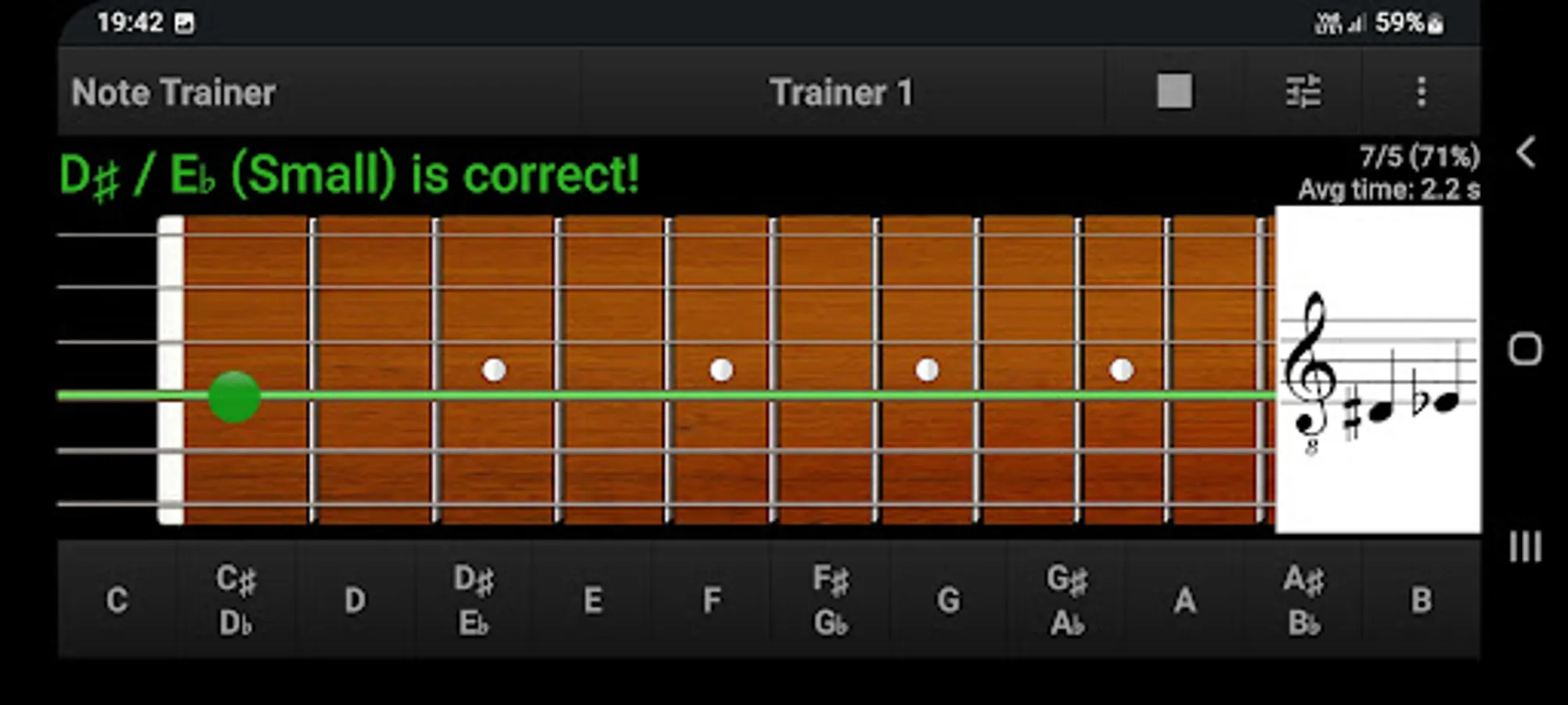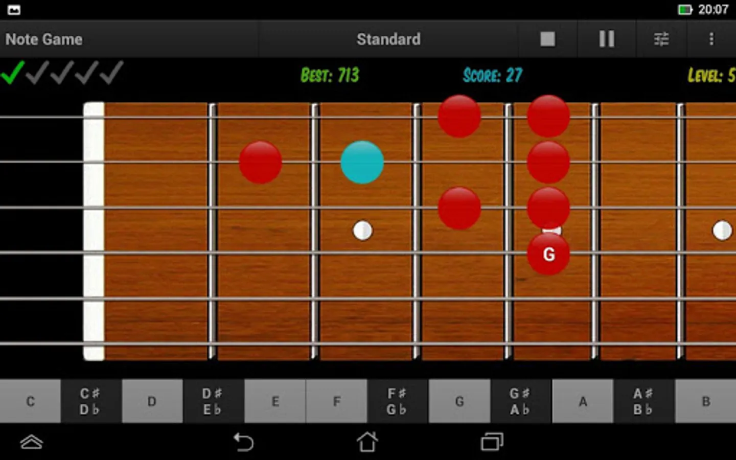 GAME MODE offers a more efficient way of verifying the knowledge and learning the notes on the guitar fretboard by playing and having fun.