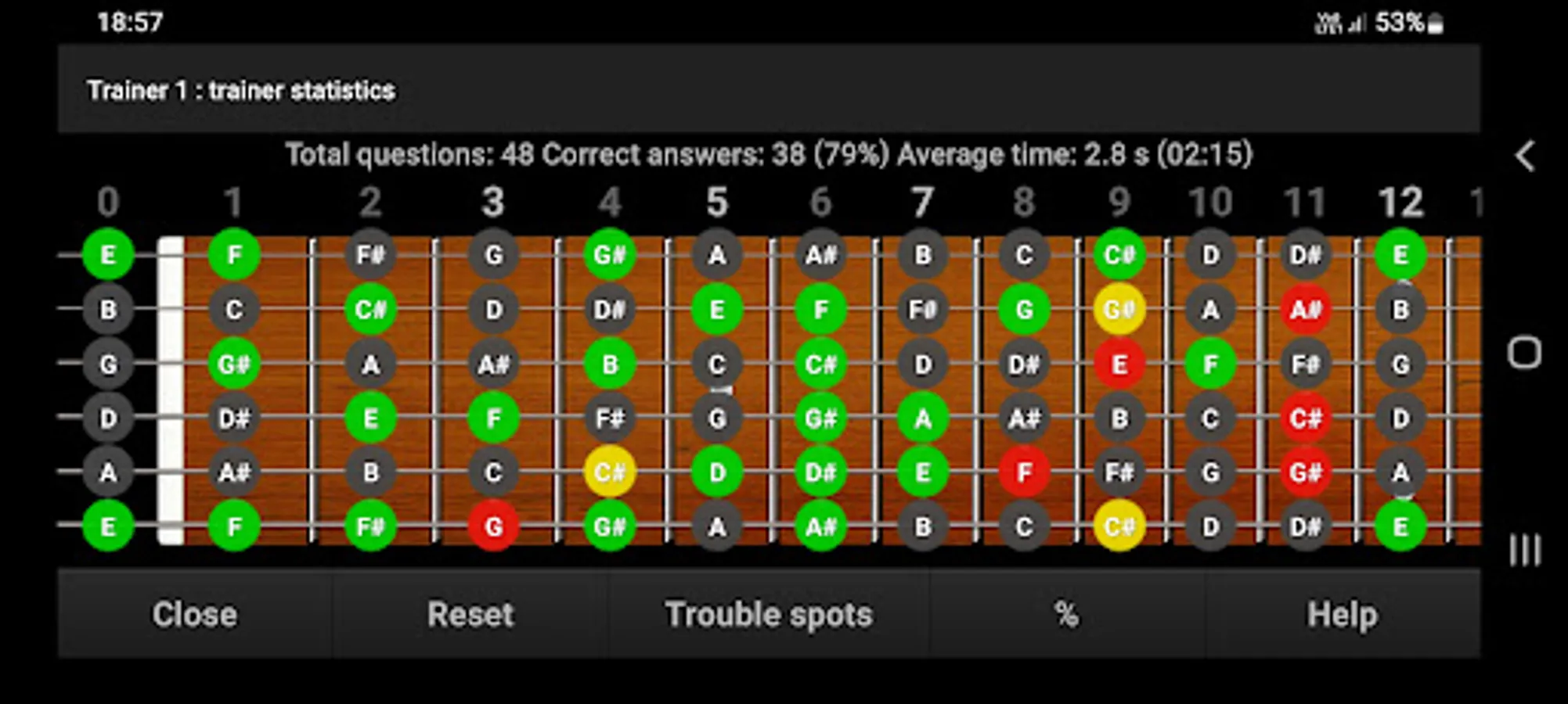 ★ Customizable trainer profile that defines the area and the notes on fretboard you would like to focus on