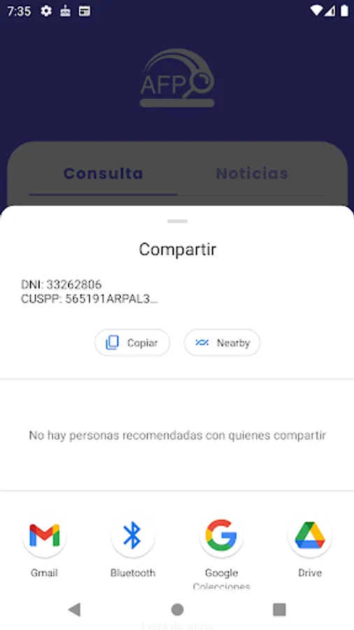 Share DNI, CUSPP, Surnames, Names, Date of Birth and AFP.