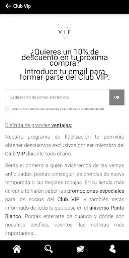 ¡Únete al Club VIP! Suma puntos con tus compras para conseguir tu cheque regalo, recibe un descuento el día de tu cumpleaños y sé el primero en disfrutar los descuentos exclusivos y las ventas anticipadas.