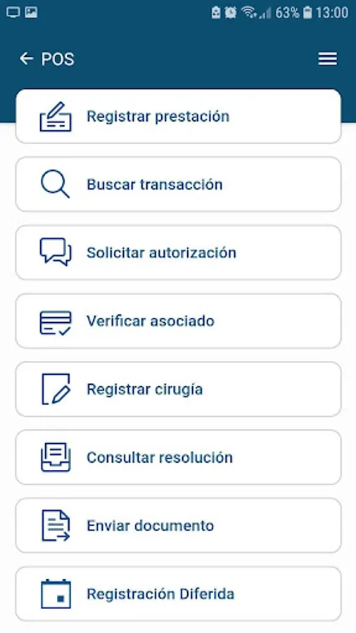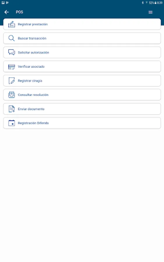 mPOS is an application aimed at Medical Providers, which allows online transactions, such as Eligibility, Report Benefits, Cancel, etc. With mPOS you can attach an image of the surgical protocol or add images to a medical report and associate it with an admission order to complete the audit process.
