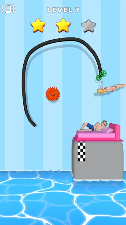 Draw a line and let the lady slide along the line to the bed at the end. The journey is full of danger and uncertainty, can you do it?