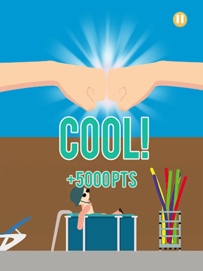 Slides your finger making a straight line that will determine the angle and the power of the jump. Aim well and arrive at the pool!
