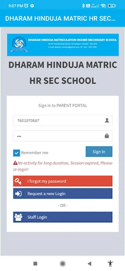 DHARAM HINDUJA MATRIC HR SEC SCHOOL, Tiruvottiyur Chennai, provides the Parents & Staffs a easy way of Communication using the School App.