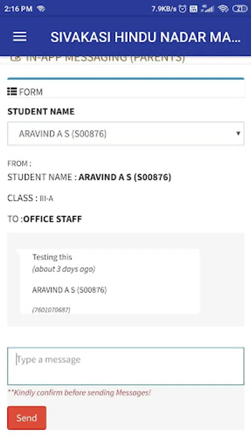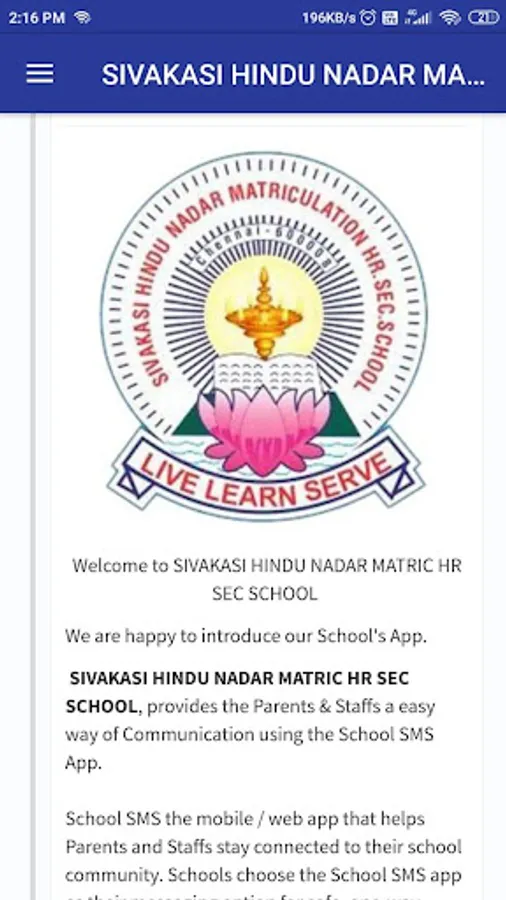 Sivakasi Hindu Nadar Matric Hr. Sec. School, provides the Parents & Staffs a easy way of Communication using the School SMS App.