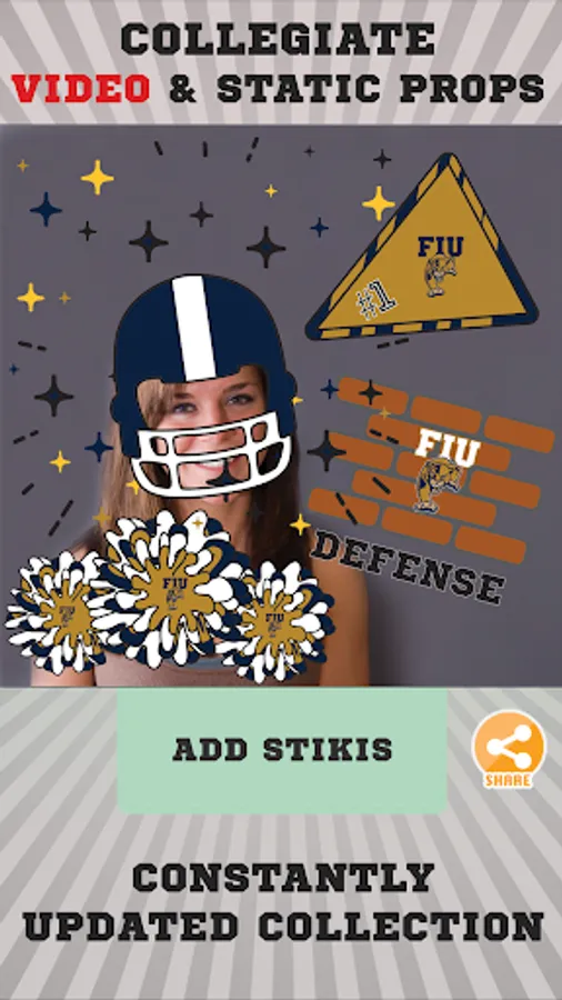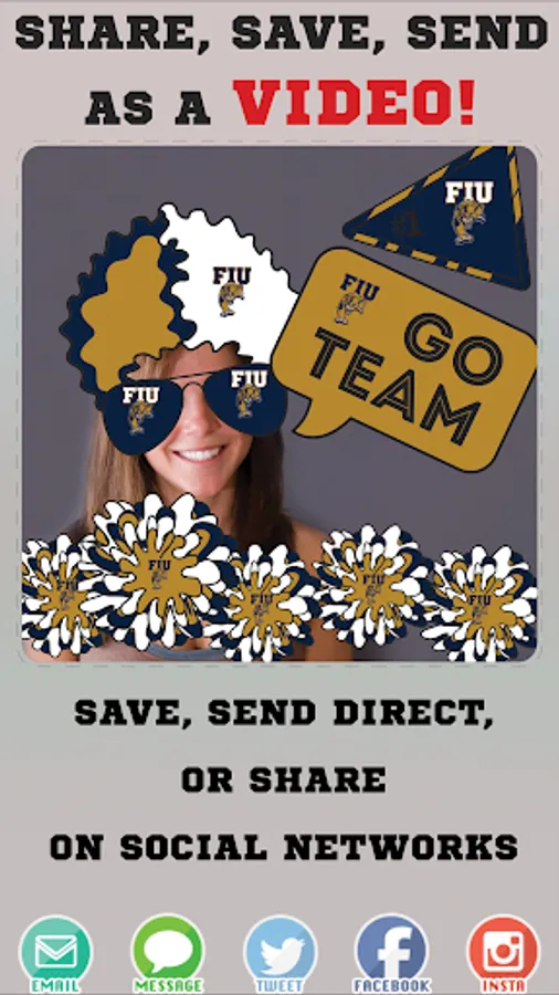 FIU Panthers Animated Selfie Stickers app lets you add awesome, officially licensed FIU Panthers animated and graphic stickers to your selfies. You can add a variety FIU Panthers animated stickers such as FIU Panthers Defense, Interception, Touchdown, Cheering Fan and more. You can also add graphic stickers such as branded glasses, hats, shirts, foam fingers, hair, helmets and much more. Afterwards, share them with your friends through email, messaging, Instagram, Facebook, and Twitter. Or save them to your photo gallery for future use. Become the FIU Panthers fan you were meant to be!!!