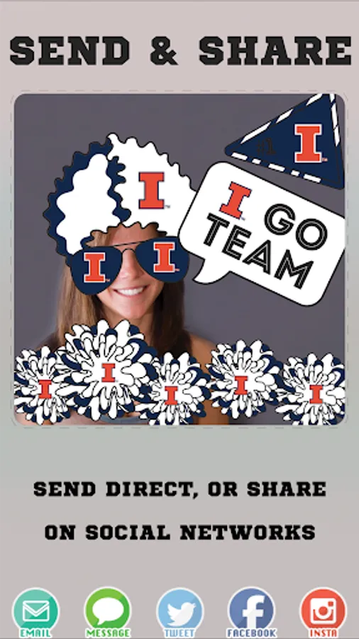 Illinois Fighting Illini Selfie Stickers app lets you add awesome, officially licensed stickers to your selfies and other images. You can add Illinois Fighting Illini branded footballs, basketballs, glasses, hats, shirts, foam fingers, hair, helmets, word bubbles and much more. Afterwards, share them with your friends through email, messaging, Instagram, Facebook, and Twitter. Become the Illinois Fighting Illini fan you were meant to be!!!