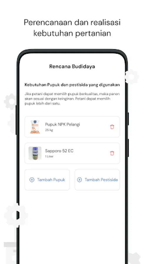 iFarms has recommendations for the best saprotan products that can be used for each type of plant. Supported by leading agro-input producers, farmers can be facilitated in the form of doses of fertilizers and pesticides according to cultivation needs.