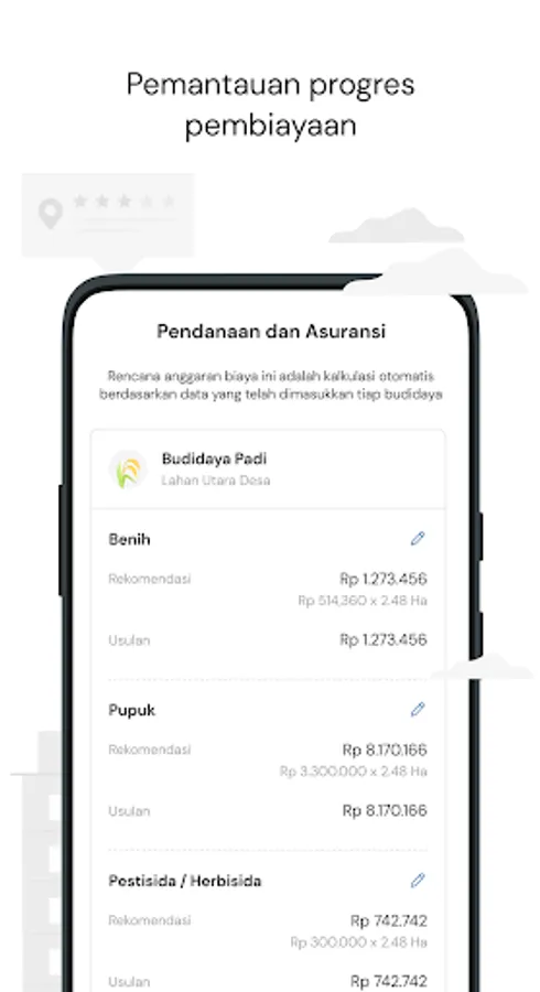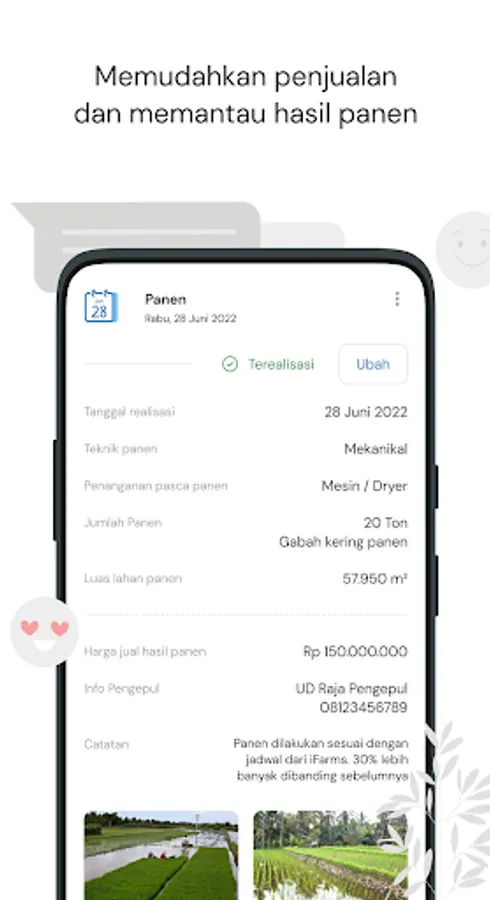 iFarms makes it easier for farmers who want to join the Makmur program or makes it easier for agronomists to survey prospective farmers and potential land. By using a mobile app, land surveys can be directly identified with their location and extent. iFarms is also integrated with funding institutions/banks and insurance to increase farmer's cultivation productivity.