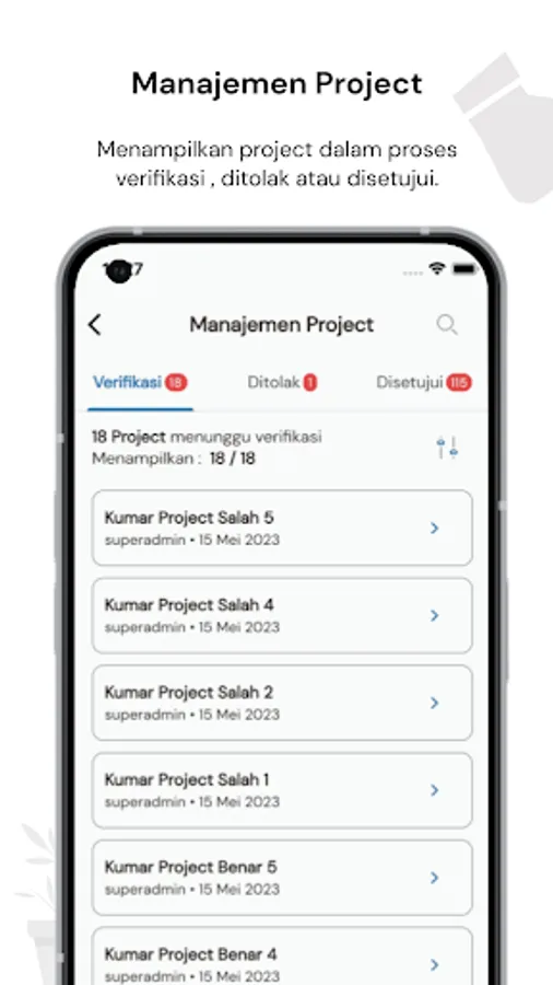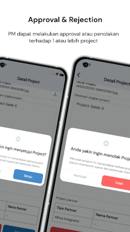 iFarms PM - Project Manager is a platform for project manager, accept or reject a project. The project manager may see a list of waiting approvals, rejected and approved projects.