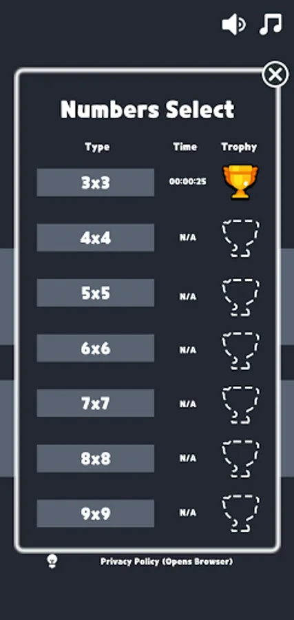 - 3x3 / 5x5 / 7x7 puzzle modes supported.