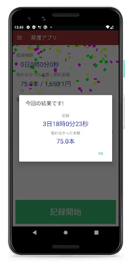 ・このアプリでは今まで1日に吸っていた煙草の本数を入力し、禁煙開始から節約できた金額を毎秒カウントしていきます。