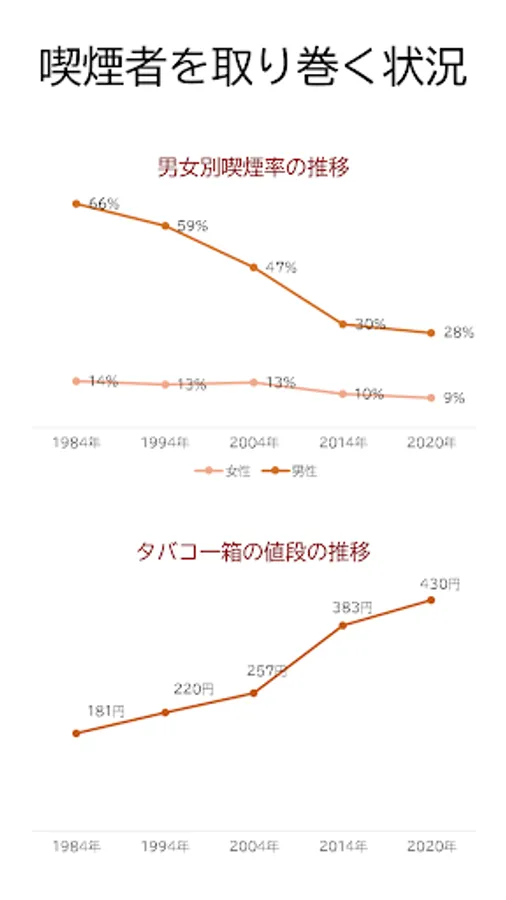 ・禁煙によって得られる体の変化を、禁煙直後、20分後、8時間後、1日後、2日後・・・と、このアプリは時系列で表示します。