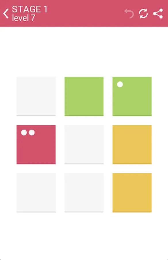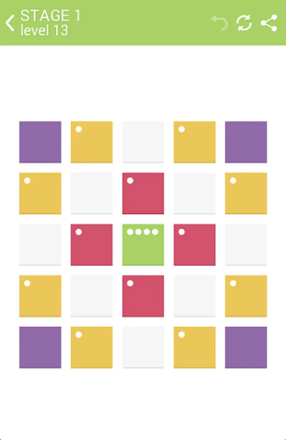 Each tile has a limited amount of moves, shown by little white dots inside it.