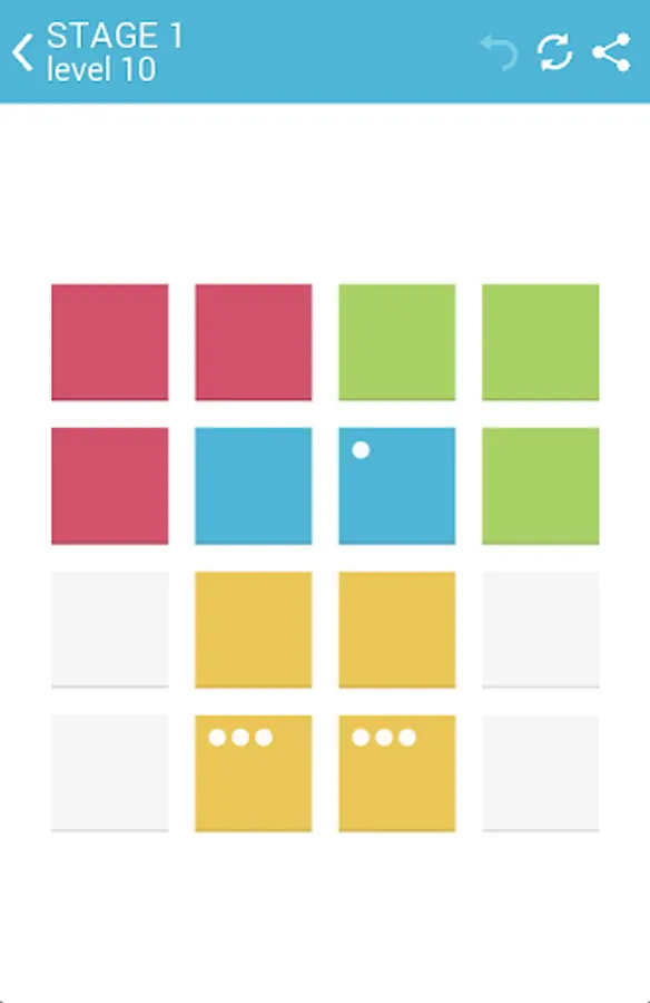 Rules are simple: You can move colored tiles between white empty cells in vertical or horizontal directions (one cell at a time), or you can paint a neighbor tile by dragging one tile into another.