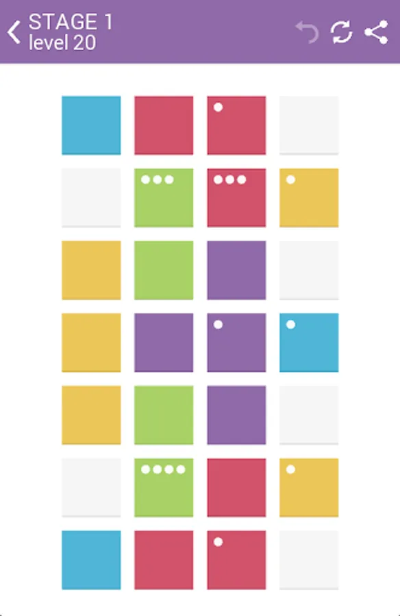 Puralax is a simple puzzle game where you need to paint every colored tile into one single color to complete each level.